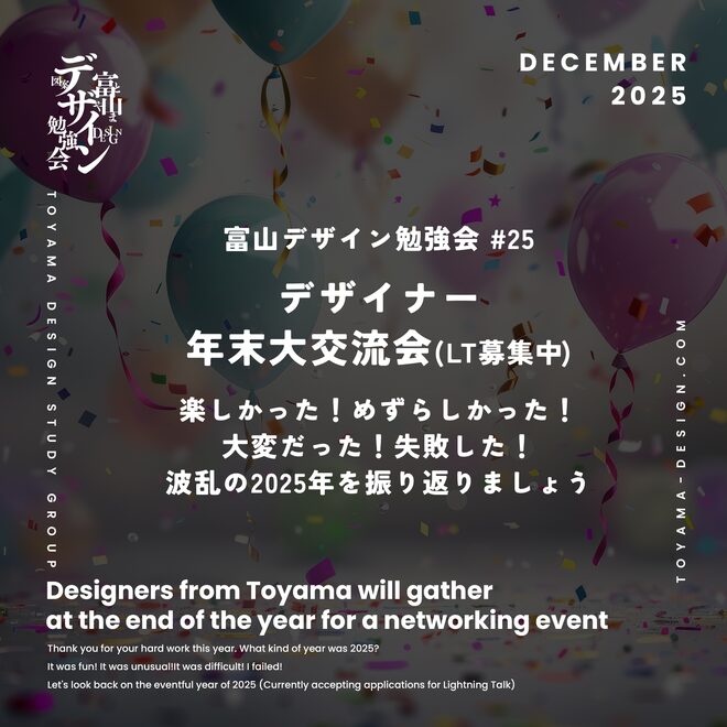 富山デザイン勉強会とは 富山デザイン勉強会は、デザインにたずさわる人、デザインを勉強したい人など、デザインに興味のある人なら誰でも参加できる勉強会です。…
