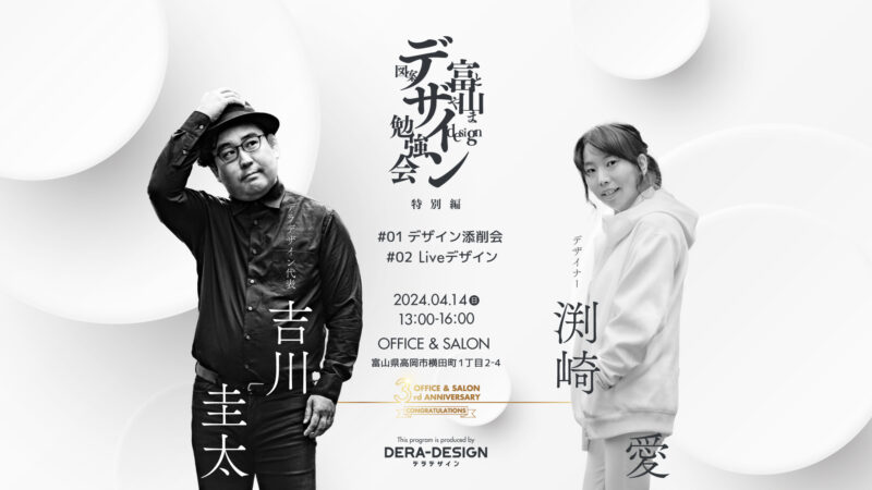 | 開催場所 | DERA-DESIGNスタジオ 富山県砺波市鷹栖1933 → 開催場所の詳細はこちら |